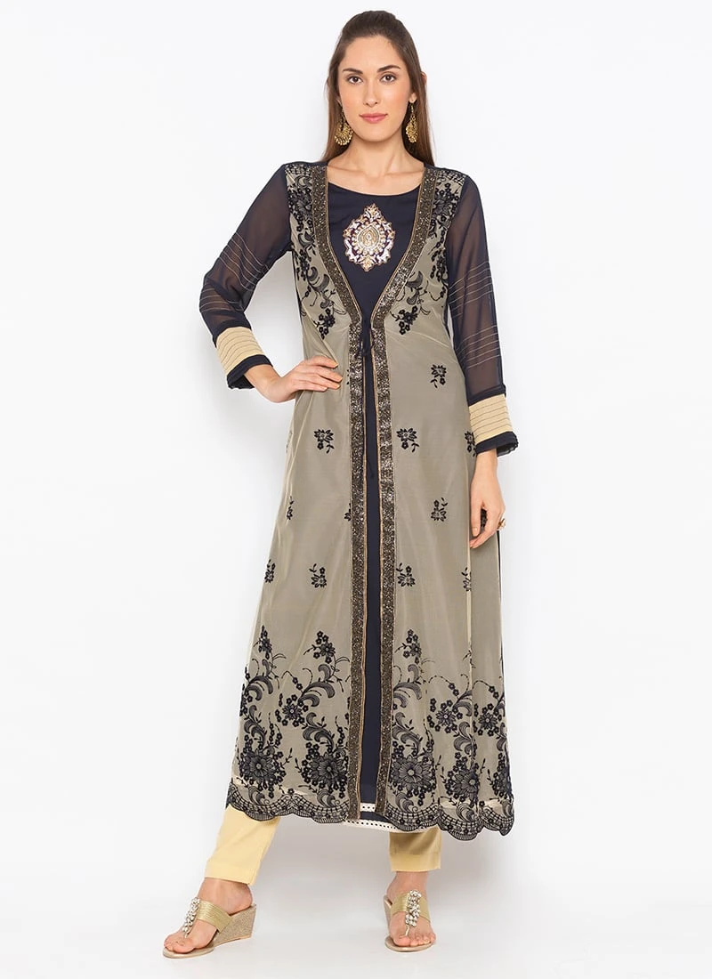 Navy Blue Georgette Embroidered Kurta Straight Pant Set After Six Wear